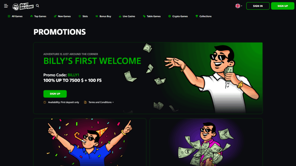 - Gebühren: Billy Billion erhebt keine eigenen Gebühren, jedoch können Zahlungsanbieter oder Banken Kosten verursachen.