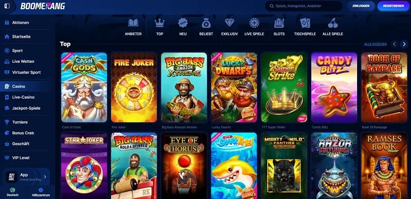 🎰 Boomerang Casino Spielangebot – Unbegrenzte Möglichkeiten