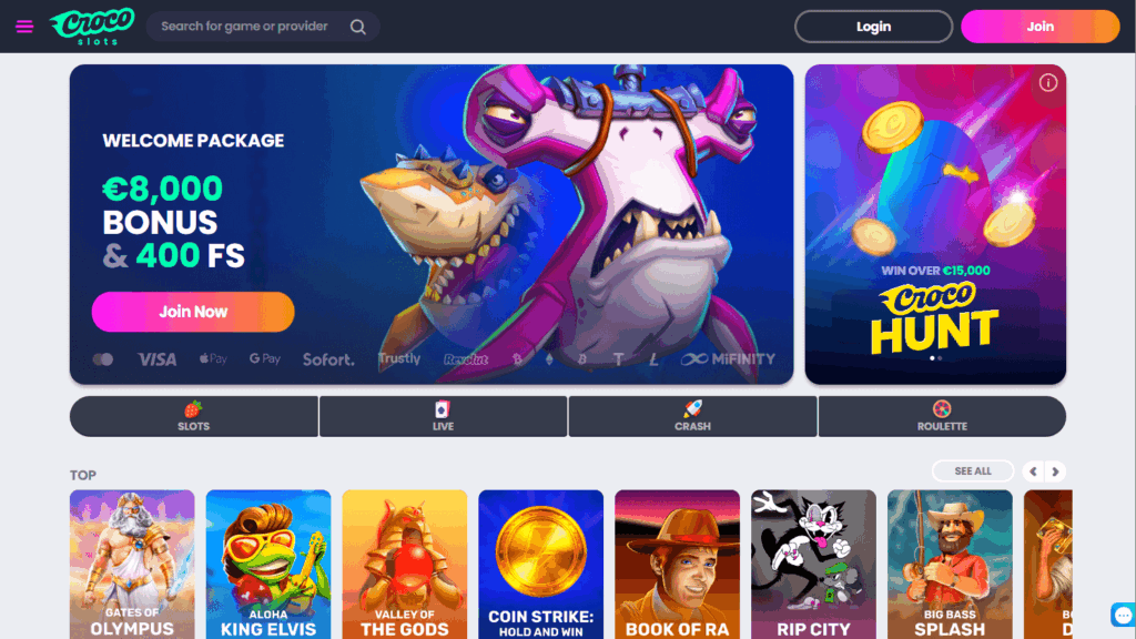CrocoSlots ist kein gewöhnliches Online-Casino – es ist frisch, frech und einfach anders! 🐊 Schon das verspielte Design mit dem kultigen Krokodil macht gute Laune. Doch CrocoSlots überzeugt nicht nur optisch – das Spielerlebnis steht hier an erster Stelle.