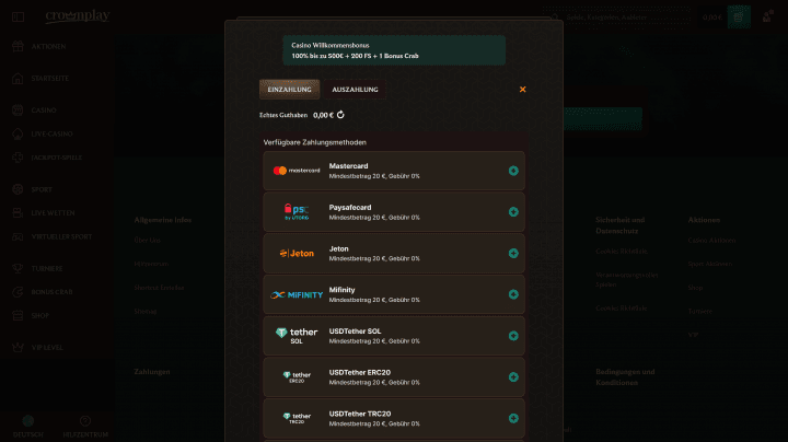 Bei der ersten Einzahlung in die Spielgeldbörse wird schnell deutlich, dass das Casino eine breite Auswahl an Zahlungsmethoden bietet. So findet jeder Spieler eine passende Option. Neben klassischen Zahlungskarten stehen verschiedene E-Wallets, Prepaid-Karten sowie Kryptowährungen zur Verfügung. Nachfolgend ein Überblick über die verfügbaren Zahlungsoptionen.