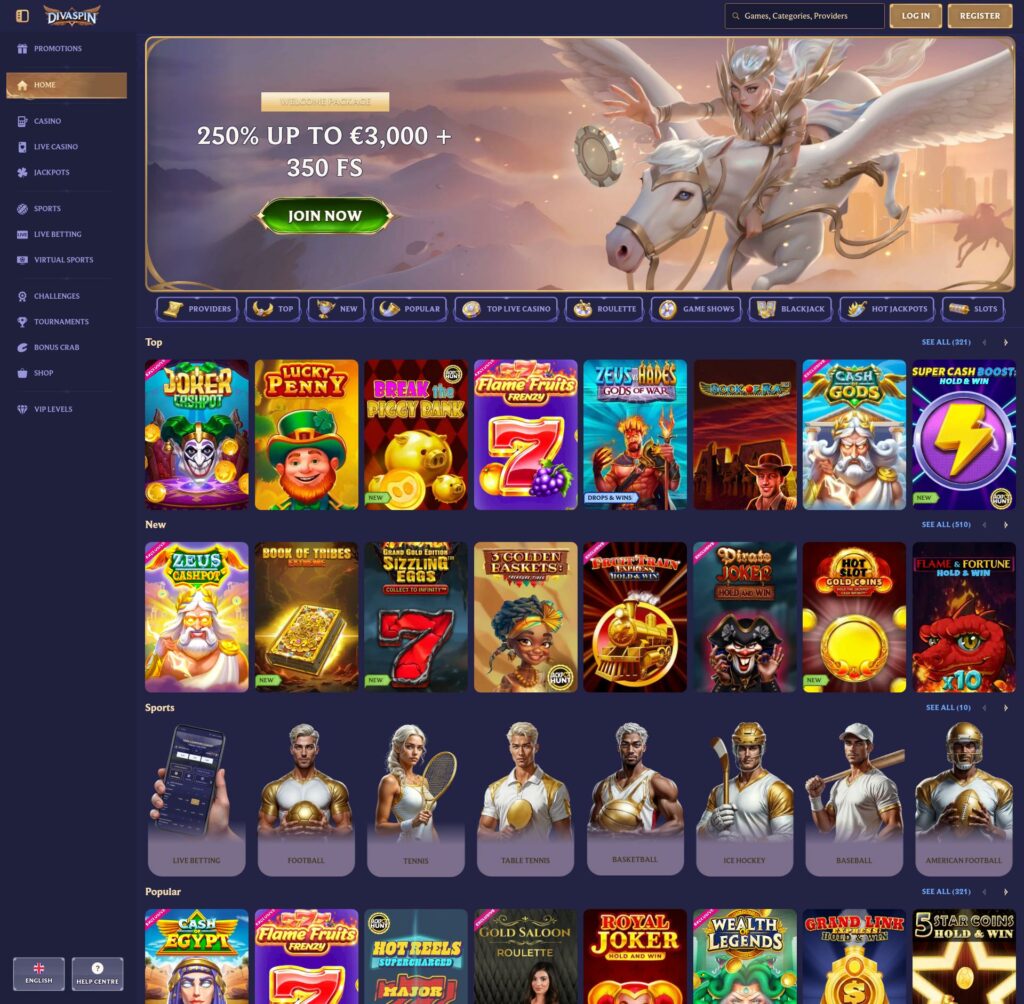 Divaspin games casino | Riesige Auswahl an Spielen und Kategorien | Direkt über das Hauptmenü |