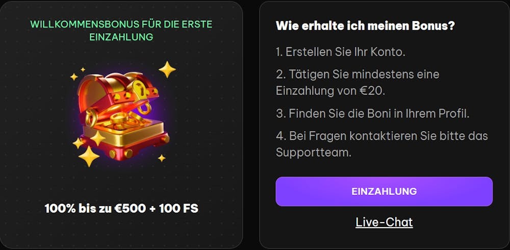 Treue Spieler werden durch das VIP-Programm mit exklusiven Boni, höheren Limits, schnelleren Auszahlungen und persönlichem Support belohnt. Mit jedem Loyalitätspunkt steigen Spieler im VIP-Programm auf und genießen immer wertvollere Belohnungen.
