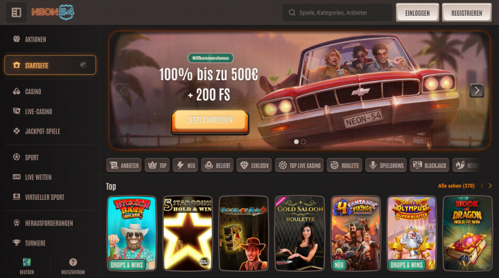 Slots bilden das Herzstück des Casinos. Hier stehen unzählige Titel von renommierten Entwicklern wie NetEnt, Pragmatic Play oder Play’n GO bereit. Spieler können zwischen einfachen Klassik-Slots mit wenigen Gewinnlinien und komplexen Abenteuerspielen mit Bonus-Features wählen. Besonders die Neon54 Freispiele ohne Einzahlung sorgen dabei für einen spannenden Einstieg, da sie kostenlos getestet werden können.