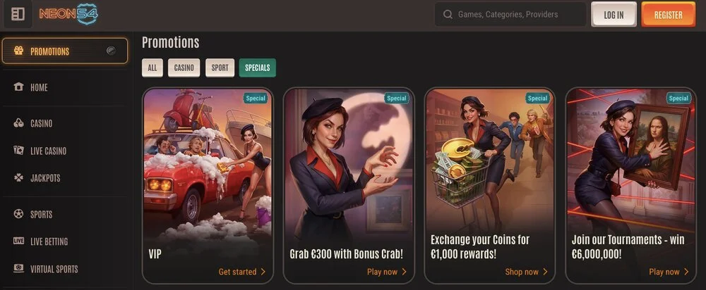 Die Spieleauswahl im Neon54 Casino ist kaum zu übertreffen. Durch die Verbindung aus Klassikern, Innovationen und Live-Action wird eine unvergleichliche Abwechslung geboten. Spieler finden hier alles – von simplen Automatenspielen bis hin zu strategischen Tischklassikern und spannenden Live-Erlebnissen.