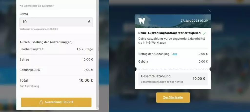Die Bearbeitungszeit für Auszahlungen hängt von der gewählten Zahlungsmethode ab: