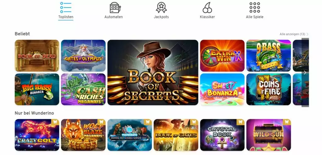 9️⃣ Welche Spiele gibt es bei Wunderino?